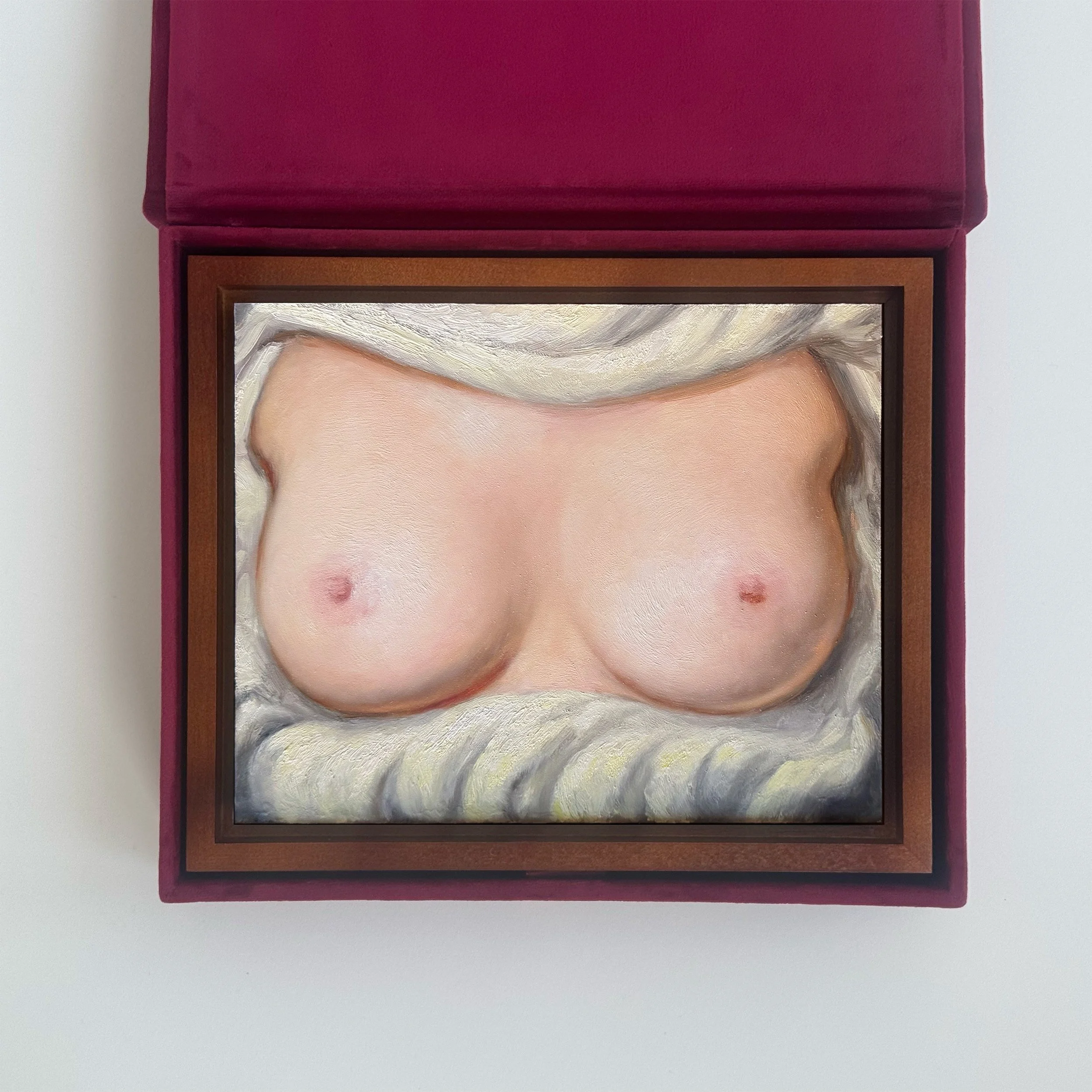 All works arrive ready to hang, mounted in a walnut floater frame, and packaged in a custom velvet presentation box.